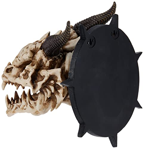 Design Toscano Trofeo con teschio di Drago con le corna Decorazione in stile gotico da parete, poliresina, avorio antico, 25 cm