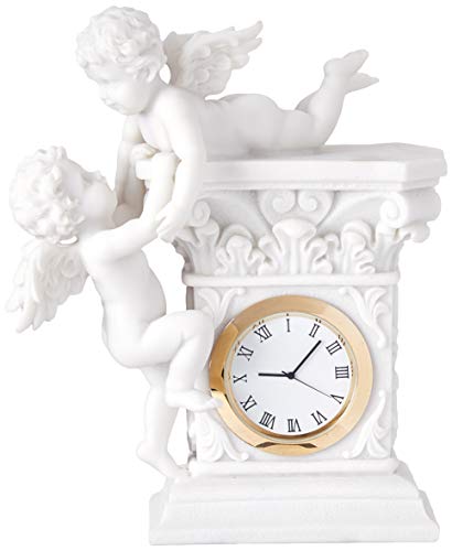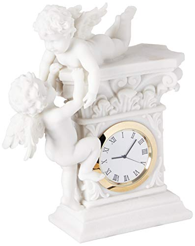 Design Toscano WU74349 Design Barocco Toscano Twin Cherubs Bonded Marmo Orologio Desktop, Bianco