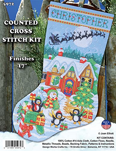 Tobin 14 Count Penguin Party Stocking Counted Cross Stitch Kit, 17-Inch Long
