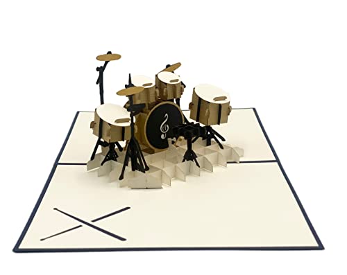 Design3dkarten Biglietto pop-up per tamburi - biglietto di compleanno per drummer, rock band o come regalo in denaro per musicisti