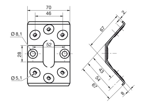 Design61 Set di 4 staffe angolari per tavolo in acciaio, 103 x 70 mm