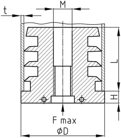 D = 28 / f max kg = 150 / H = 5 / L = 34 / M = M16 / P = 1-2 mm