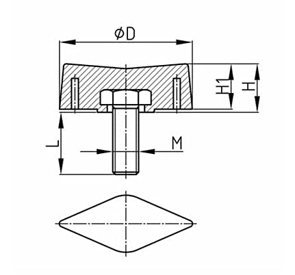Design61 4 viti a farfalla in plastica con bullone filettato in acciaio M6 x 10 mm