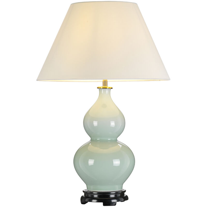 Collezione Harbin LAMPADA ZUCCA Lampada da tavolo a 1 luce con struttura alta - Celadon. Ceramica orientale con forma a zucca color celadon, completata da un paralume in policotone bianco sporco.