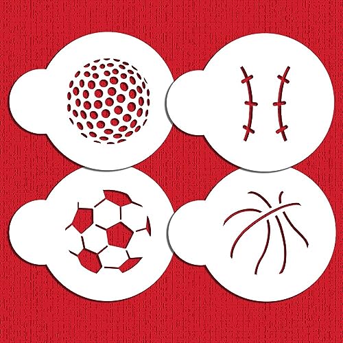 Designer Stencils C219 Small Sports Ball Cupcake e Biscotti stampini (Basketball - Golf - Calcio - Baseball), Beige/Semi-Transparent