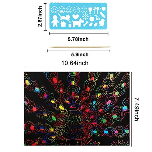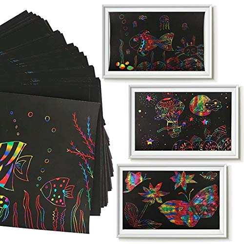Facile da dipingere: i fogli neri da graffio sono realizzate con la migliore carta con colori arcobaleno e motivi nascosti sotto. Basta graffiare il rivestimento nero con lo stilo in legno incluso per rivelare i colori sottostanti, senza vernice, facile da usare per incredibili opere d'arte creative, cartelli e molto altro ancora. Tieni occupati ragazzi e ragazze con questo delizioso prodotto artigianale.