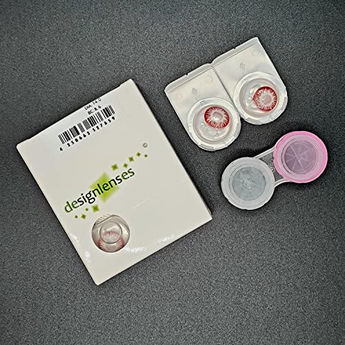 DESIGNLENSES, Lenti a contatto colorate bianche e rosse per costume di Halloween da zombie, senza gradazione, 1 paio (2 pezzi), lentes cosmetiche colore bianco + custodia per lenti "Zombie Fear"