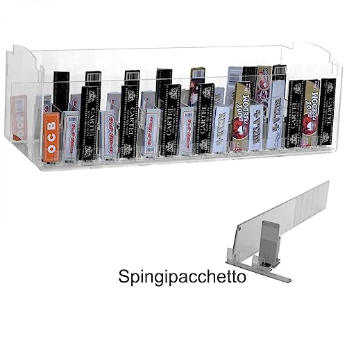 Espositore in plexiglass trasparente da banco porta cartine, dotato di n° 16 spingipacchetto (art. E-467 KSP)