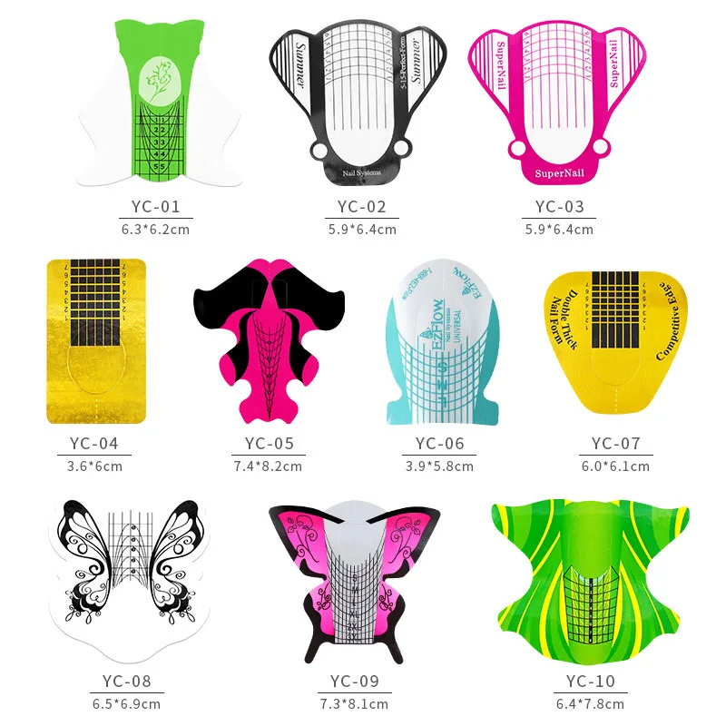 10 Designs Nail Art Form Tips 100pcs French Nail Extension Guides For UV Gel Acrylic DIY Tools Adhesive Building Forms Stickers