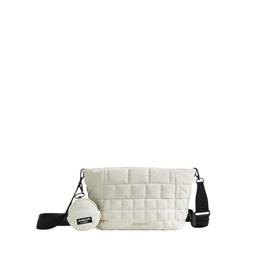 Borsa a tracolla con cerniera in tessuto trapuntato bianco tinta unita. Con charm portamonete rotondo trapuntato. Nuova collezione Accessori AI21 Desigual.
