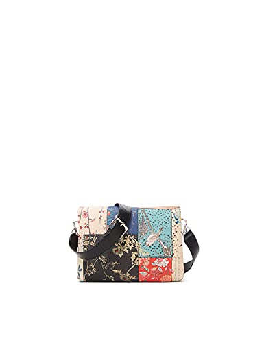 Borsa a tracolla rettangolare in finta pelle con patta superiore, chiusura magnetica e patch digitale di stampe floreali. Nuova collezione Accessori AI21 Desigual.
