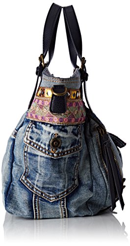 Desigual BOLS_Rotterdam Exotic Jeans, Borsa con Maniglia Donna, Blu (5001), 15x25x24 cm (B x H x T)