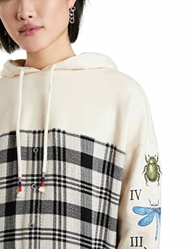 Camicia da donna oversize con balza sull'orlo e stampa patch a quadri e farfalle sulle maniche. Nuova collezione Donna AI21 Desigual.