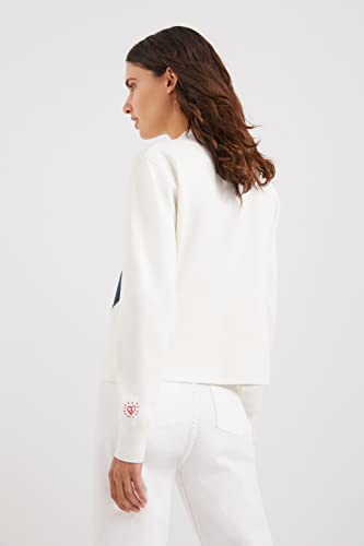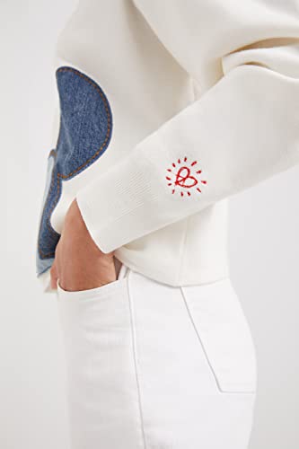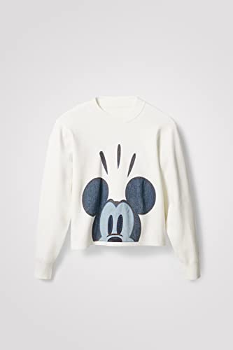 Desigual JERS_Mickey Patch Felpa, Bianco, L Donna