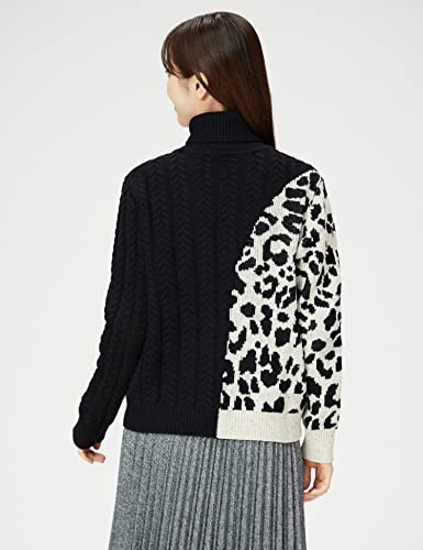 Maglione a maglia in bianco e nero con collo alto, jacquard tipo stampa animalier e motivo a trecce. Nuova collezione Donna AI21 Desigual.