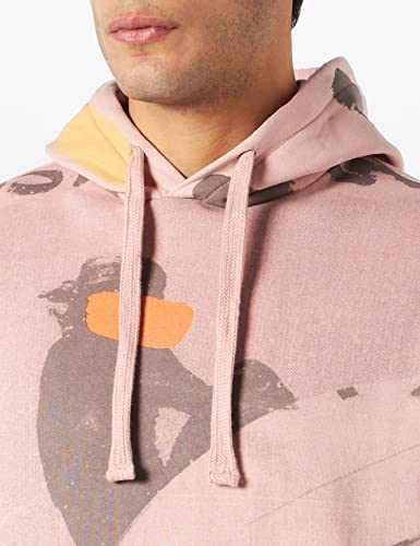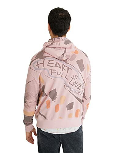 Felpa rosa con patch digitale di stampe arty a tema surf con effetto di macchie di pittura. Nuova collezione Uomo AI21 Desigual.