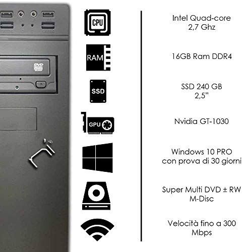 Pc desktop Intel Quad Core scheda grafica GT-1030 ssd 240gb 16gb ram ddr4 windows 10 pro preinstallato con licenza