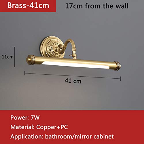 DESLP Lampada da Specchio Bagno Classico, Applique Frontale a Specchio Ottone con Testa Girevole, 3 Temperature di Colore, LED Luce Bagno Specchio Vintage Lampada Armadio per Toilette,41cm/7w