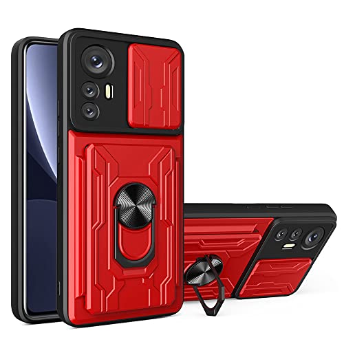 DESSEN Cover per Motorola Moto Edge 30 Ultra, Custodia con Anello e Slot per Schede Staccabile e Obiettivo Gase, Antiurto Guscio con Magnetico Rotante Supporto. Rosso