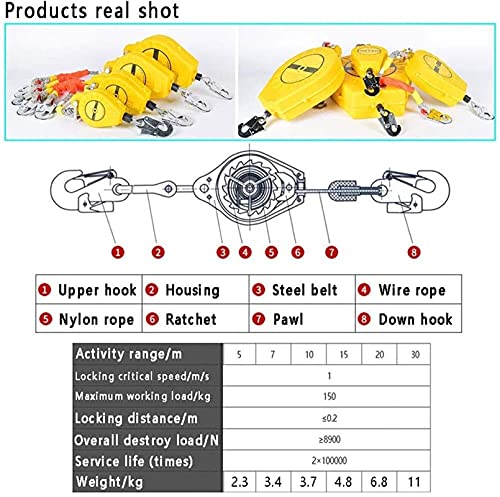 DestinyXVZ Dispositivo Anticaduta Retrattile, Anticaduta di Tipo Retrattile, Dispositivo Anticaduta a Richiamo Automatico (Size: 10m)