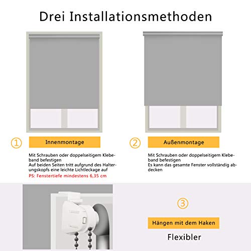 Deswin, tende oscuranti lunghe, avvolgibili, con tubo da 20 mm di diametro, Poliestere, LIGHTGREY, 95 x 160 cm