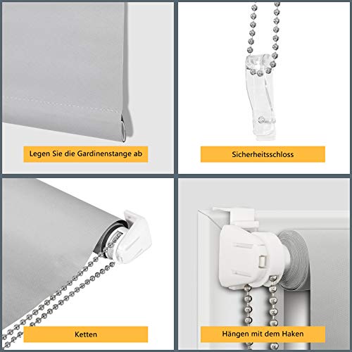 Deswin, tende oscuranti lunghe, avvolgibili, con tubo da 20 mm di diametro, Poliestere, DARK GREY, 95 x 160 cm