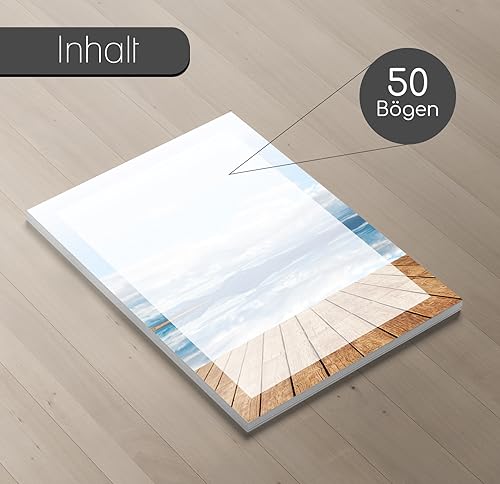 Detail innamorato. Panorama di carta da lettere, 50 fogli formato A4 DV _ 197 | Carta da lettere, Brief arco, vista, see, Paesaggio, Weite, Acqua, Cielo, Legno, Steg, vista, invito, Ringraziamento,