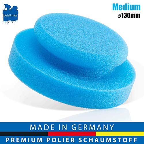 Spugna per lucidatura a mano detailmate Medium Cut Foam XL, blu, Ø 130/50 mm, buona presa e maneggevole nell'uso, spugna di alta qualità, grazie all'ampia superficie lucidante è ideale per la levigatura manuale su grandi superfici.