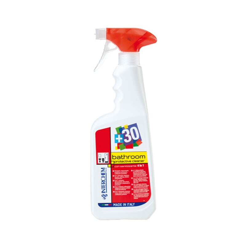Detergente per l'ambiente bagno 6 in 1 . Deterge, disincrosta, profuma, sanifica, rallenta la formazione di calcare e crea una barriera protettiva che fa scivolare l'acqua. Spray 750 ml. CARATTERISTICHE - 6 azioni in 1 - Rilascia una barriera protettiva che fa scivolare l'acqua - Rallenta la formazione di sporco e calcare MODALITA' D'USO Spruzzare direttamente una piccola quantità di prodotto sulla superficie da pulire, passare con spugna o panno in microfibra e risciacquare con acqua. Non utilizzare su marmo e pietra naturale. pH 7