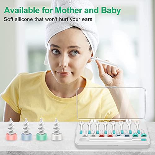 Detergente per le orecchie, detergente per le orecchie Q Grips per tutta la famiglia con 16 punte in silicone lavabili, set per la pulizia delle orecchie, 8 testine a spirale / 8 testine