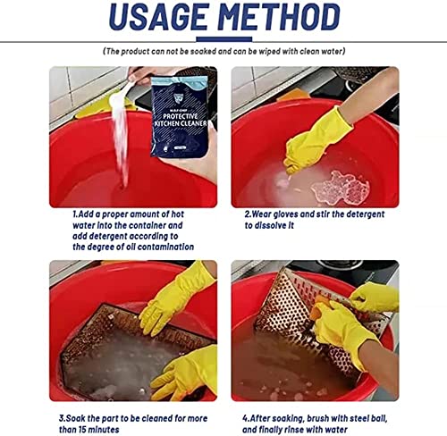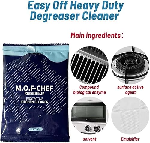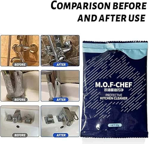 Detergente sgrassante resistente, detergente protettivo per cucina M.O.F-CHEF, detergente protettivo per cucina M.O.F-CHEF in polvere, polvere per la pulizia degli oli da cucina (2 pezzi)