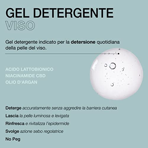 EFFETTO PURIFICANTE: gel detergente viso con azione sinergica ed effetto purificante grazie all'acido ialuronico, le proprietà lenitive e olio di Argan. Deterge e rinfresca la pelle ogni giorno. Pelle protetta dai radicali liberi grazie alle proprietà antiossidanti della Niacinamide che nutre e idrata in profondità. Prodotta per sfruttare la sua azione sebo regolatrice