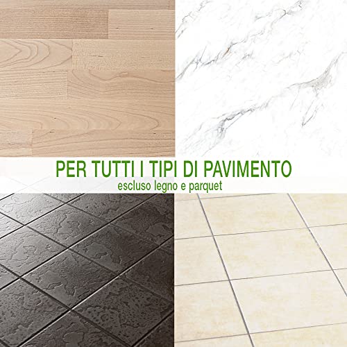 Prodotto Super Concentrato: pari a 16 litri di prodotto in polvere, un solo cucchiaino da caffè di prodotto permette di pulire e igienizzare qualsiasi pavimento (escluso legno e parquet)