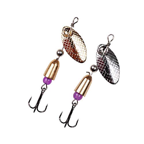 DETHN [10 Pezzi] Esche da Pesca Spinner 3,5 G 5,5 G Esca da Pesca con Paillettes in Metallo Spinning Metal Spoon Jig Wobblers Fishhook Tackle 3.5g/d'oro, Gancio Triplo con Piuma