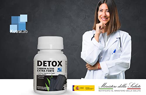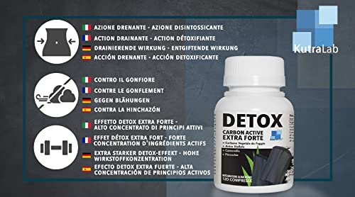 DETOX CARBONE ATTIVO VEGETALE EXTRA FORTE | Aerofagia E Meteorismo I 120 Compresse Ad Alto Dosaggio | Drenante E Diuretico Forte | Eccezionale Per Ridurre Aria Nella Pancia