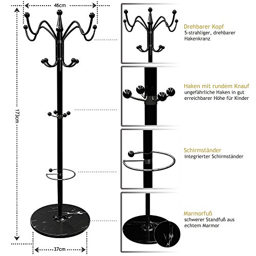 Deuba Attaccapanni Appendiabiti da Terra Base in Marmo 173cm Portaombrelli Girevole Nero