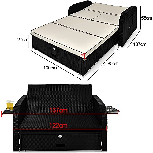 COMODO & SCHIENALE REGOLABILE: Il Divano da giardino a 2 posti è dotato di uno schienale regolabile in 6 posizioni, in modo da poter scegliere il proprio comfort personale da seduti o da sdraiati