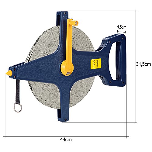 Deuba Metro a Nastro 100m/330Ft Doppia Scala Misurazione Fibra di Vetro Flessometro Rotella Metrica