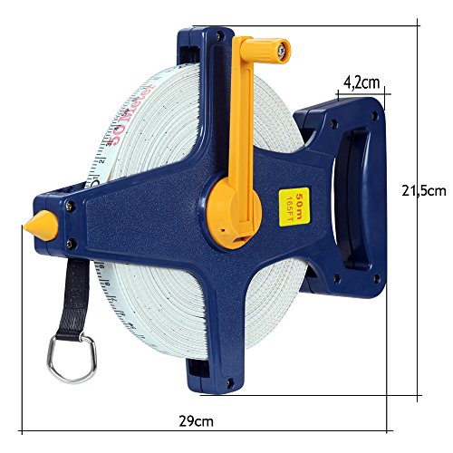 Deuba Metro a Nastro 50m/165Ft Doppia Scala Misurazione Fibra di Vetro Flessometro Rotella Metrica