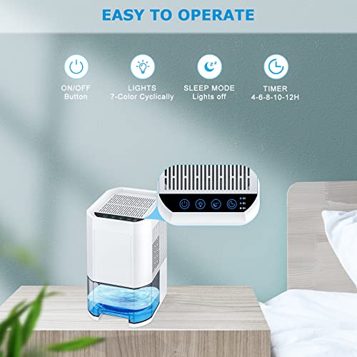 Deumidificatore casa 1200ml Portatile Deumidificatore 7 Colori LED Mini Deumidificatori per Muffa e Umidità per Cucina, Camera da letto, Ufficio, Armadio, Bagno Silenzioso Auto Spegnimento