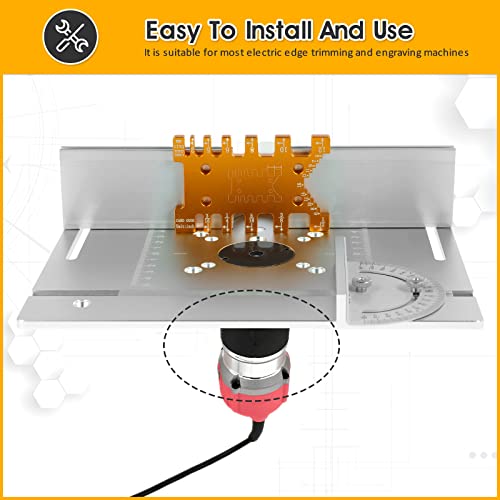 [Dimensioni e confezione] La fresatrice misura circa 240 x 200 x 5 mm/9,4 x 7,9 x 0,2 pollici e adatta per la maggior parte delle macchine elettriche per trim e incisione. Riceverai 1 x piastra per router da tavolo, 1 x forno, 1 x righello angolare e 1 x calliper, strumenti sufficienti per le vostre diverse macchine per la lavorazione del legno. per soddisfare le esigenze.
