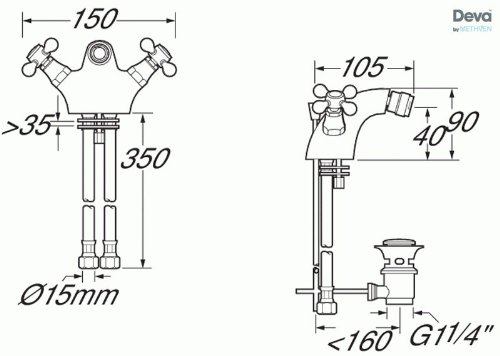 Deva TUD114 Tudor, Miscelatore per bidet, incl. tappo di scarico Pop Up