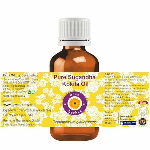 Deve Herbes Pure Sugandh Kokila Oil (Cinnamomum glaucescens) Grado terapeutico naturale al 100% 15ml (0.50 oz)