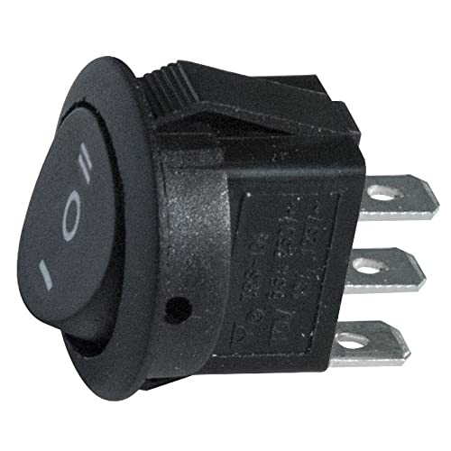 Deviatore unipolare a bilanciere SPDT unipolare ON-OFF-ON con tasto nero e con terminali faston 4,8mm, foro di montaggio diametro 20mm, 250V 6,5A