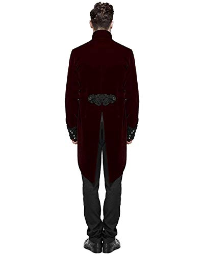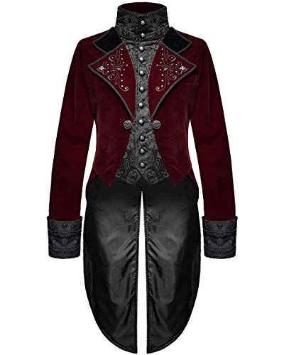 Devil Fashion Uomo Gotico Frac Giacca Rosso Velluto Nero Broccato Steampunk Vittoriano Regency Vampiro - Rosso, S