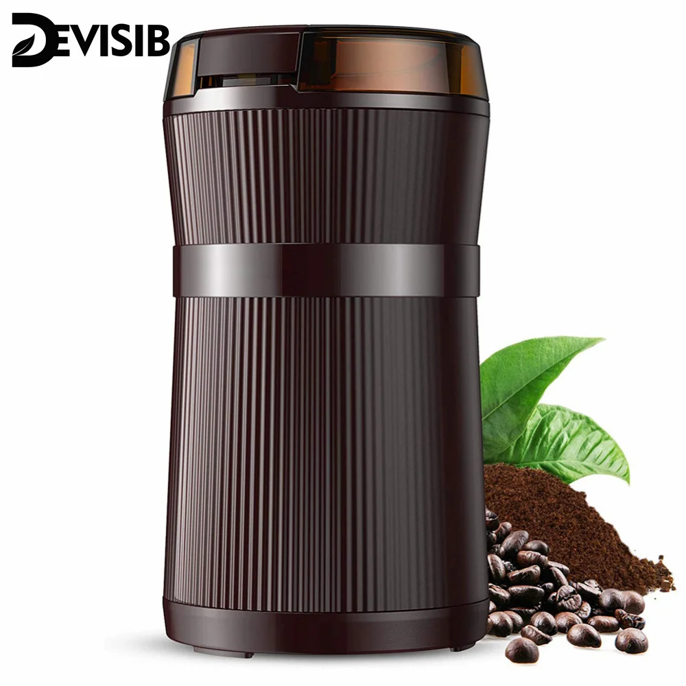 DEVISIB Coffee Grinder Electric 50g with Stainless Steel Blade and Bowl Brush Including for Making Beans Nuts Spice Sugar Grains