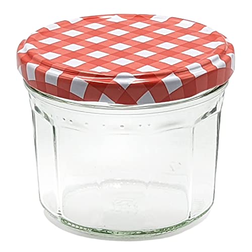 12 vasetti in vetro da 240 ml con tappo a vite Twist-Off rosso bianco a quadretti TO82