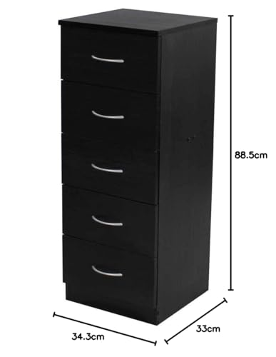 Devoted2Home Boldon Budget-Mobiletto per Camera da Letto con 5 cassetti, Colore Frassino, Rovere Nero, 33x34.297x88.5 cm