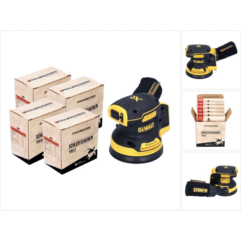 Contenuto della consegna: - 1x levigatrice eccentrica a batteria DeWalt DCW 210 - senza batteria, senza caricabatterie - 4x set di dischi abrasivi Toolbrothers TURTLE 125 mm - in totale: - 40x Toolbrothers TURTLE 125 mm P40 - 40x Toolbrothers TURTLE 125 mm P60 - 40x Toolbrothers TURTLE 125 mm P80 - 40x Utensili TURTLE 125 mm P120 - 40x Toolbrothers TURTLE 125 mm P180 - 40x Toolbrothers TURTLE 125 mm P240 Descrizione del prodotto: La levigatrice multifunzione FlexVolt XR di DeWALT è lo strumento perfetto per lavorare in base al materiale e ottenere risultati di levigatura ottimali. Grazie all'avviamento morbido elettronico e al controllo della velocità, è possibile lavorare in modo sicuro e preciso. Il sistema Performe & Protect assicura un perfetto bilanciamento della trasmissione, il massimo assorbimento delle vibrazioni e una lunga durata. L'interruttore e i cuscinetti dell'ingranaggio sono protetti da una speciale protezione antipolvere, mentre il design leggero e compatto
