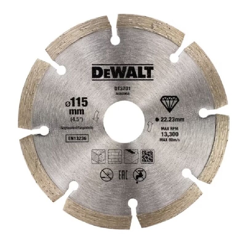 Dischi Diamantati - DT3701-QZ Taglio veloce, Disco segmentato Altezza prodotto 0.2 in Dimensione foro 22.2 mm Quantità confezione prodotto 1 Peso del prodotto 0.1 lbs